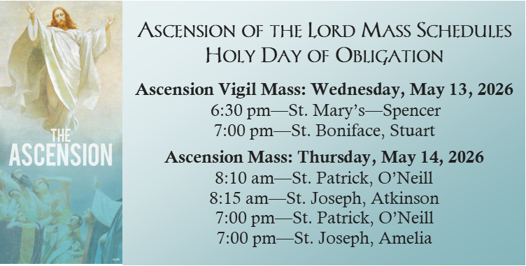 Monthly newsletter for all parishes in the Catholic Parishes of Western Holt and Boyd Counties.